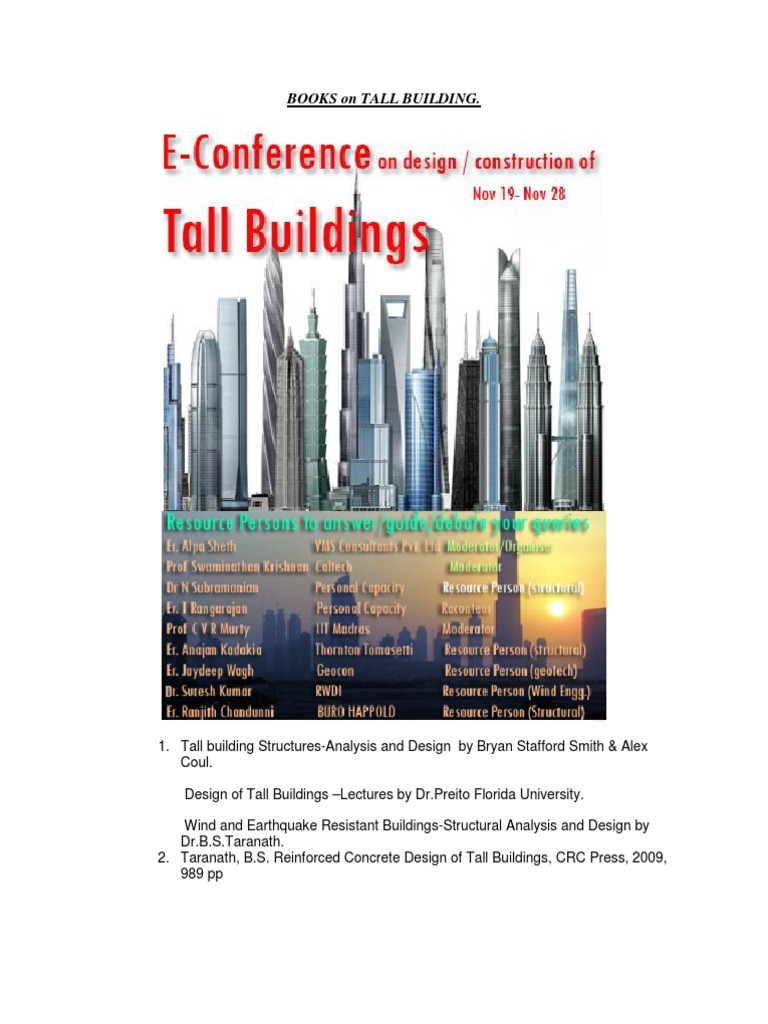 Reinforced concrete design of tall buildings taranath pdf. An exploration of the world of concrete as it applies to the construction of buildings Reinforced Concrete Design of Tall Buildings provides a practical perspective on all aspects of reinforced concrete used in the design of structures with particular focus on tall and ultra-tall buildings. Structural Analysis and Design of Tall Buildings. Structural Analysis And Design Of Tall Buildings Taranathpdfl 8 Janvier 2020.